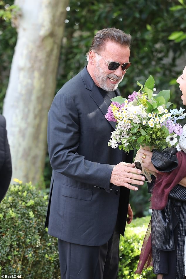 لم يكن كريس هو الرجل الوحيد الذي تواجد في الحفلة، بل ظهر والد كاثرين "أرنولد شوارزينغر"، حيث حافظ على سعادته بابنته، على الرغم من تواجده في منزل طليقته، حيث انفصلا عام 2011، بعد طلبها الطلاق منه.