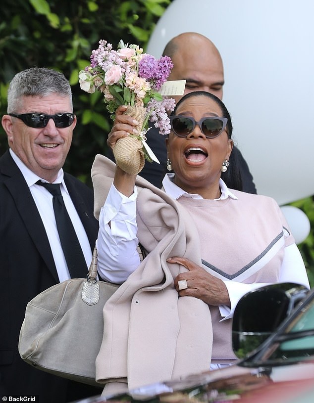 وخلال الحفل، ظهرت "أوبرا وينفري" ضمن الحضور، إذ بدت وكأنها كانت تقضي وقتاً رائعاً خلال حضورها، فتركت المنزل المُتسضيف وهي بكامل سعادتها وحيويتها مع باقة زهور بيدها، لكن لم يكن ظهور ملكة البرامج الحوارية هو ما سرق الأضواء، بل وجود العريس في الحفل وهو النجم "كريس برات" ، فعند وصوله أشرقت كاثرين وبدت بكامل سعادتها، وبدا الثنائي رائعين وحرص برات أن تحظى عروسته بكامل الاهتمام فقدم لها نخبًا "حلوًا".