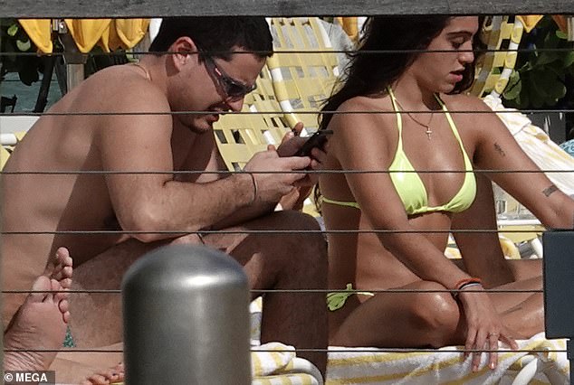أما في لقطة أخرى ظهر الرجل المجهول بجانبها وهو يمسك بهاتفه بينما كانت لورديس تشرب عصير جوز الهند.