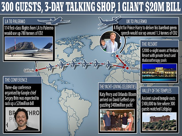 كما أن دوق ساسكس أقام على متن يخت ضخم يعمل بالغاز بالقرب من منتجع Verdura Golf and Spa Resort الذي تواجد فيه الحدث، مما جعله عرضةً للانتقاد الواسع بسبب تضارب أقواله مع أفعاله.
