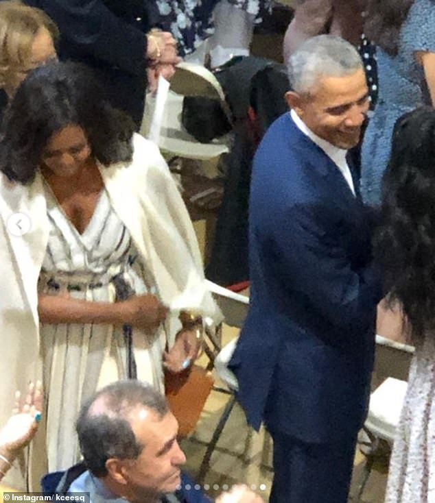 أما ساشا، فقد كانت متألقة بفستانها الأبيض، حيث التقطت صورة لها مع طلاب دفعتها 2019، بينما كان أوباما وزوجته يجلسان على المدرجات ويخالطان العائلات الأخرى.