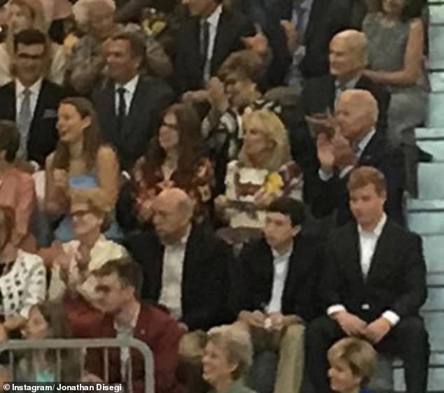 وانضم إليهم نائب الرئيس السابق والمرّشح الحالي جو بايدن وزوجته جيل، ليحتفلوا أيضاً بتخرج حفيدتهم مايسي من المدرسة المرموقة، حيث بدا في حالة معنوية جيدة، على الرغم من تقدّم منافسه عليه بفارق نقاط.