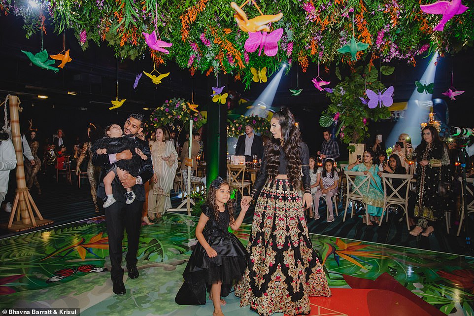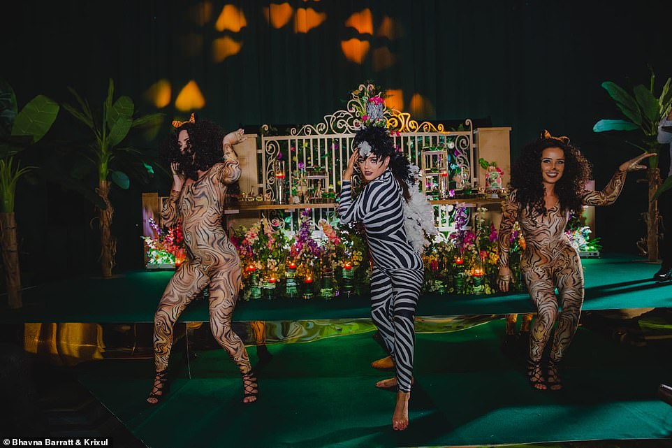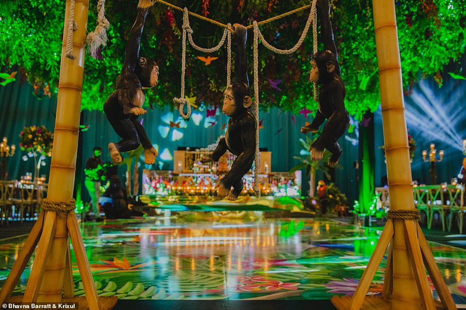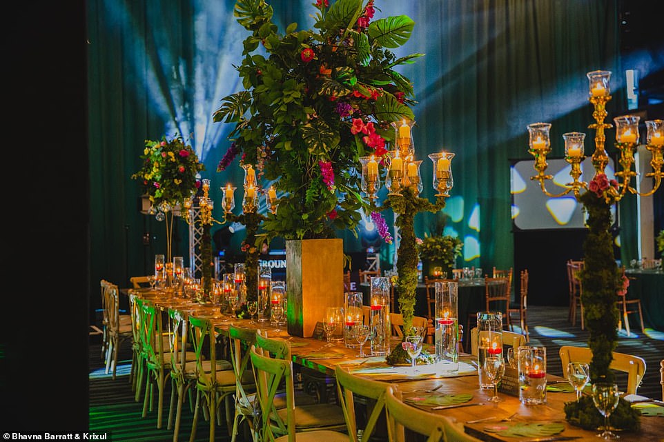وحوَّلت "فريال" (27 عامًا) و"عمر"(32 عامًا) القاعة إلى غابات استوائية مطرية مستوحاة من غابات الأمازون تحت إشراف شركة " Enchanted by Syma"، فتزيَّنت بالفراشات والطيور الملونة والأشجار الخضراء ذات الاوراق الكبيرة، بالإضافة إلى تماثيل لحيوانات استوائية، وطبع على حلبة الرقص لوحة لطيور وفراشات تُحلق.