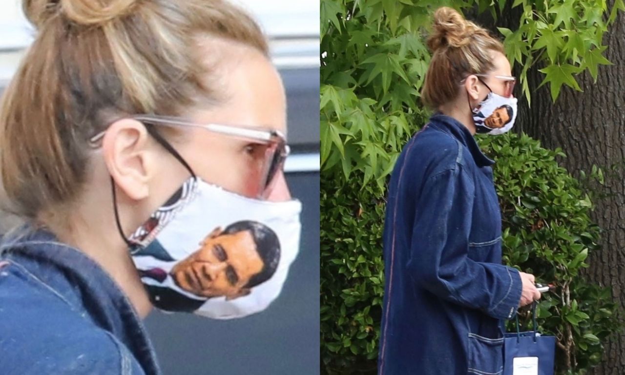 حيث التقطت عدسات الباباراتزي صورًا للممثلة البالغة من العمر 52 عامًا يوم الخميس في ماليبو كونتري مارت وهي ترتدي قناعًا طبع عليه وجه الرئيس الأمريكي السابق "باراك أوباما"، فلا تزال مقاطعة لوس أنجلوس تحت أمر البقاء في المنزل وسط جائحة تفشي فيروس كورونا.