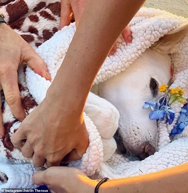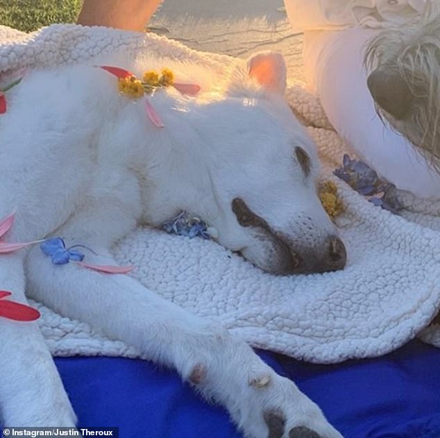 نشر "جاستن ثيروكس" سلسلة صور للكلبة البيضاء عبر حسابه على موقع "إنستغرام" بعد أن أقيمت المراسم الجنائزية لها، وكتب: "الليلة عند غروب الشمس، وبعد صراع بطولي.. وضعت إحدى أفراد أسرتنا وحاميتها "دوللي" سيفها ودرعها.. كانت محاطة بجميع أفراد أسرتها."