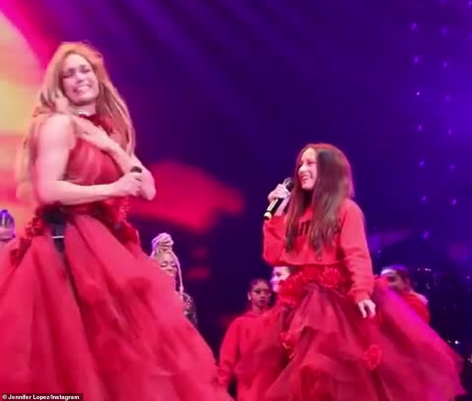 وأثناء العرض، أدّت جينيفر إحدى أغانيها وهي ترتدي فستاناً نفاشاً باللون الأحمر، لتظهر بجانبها ابنتها إيمي البالغة من العمر 11 عاماً، حيث ظهرت بإطلالة مطابقة لوالدتها.