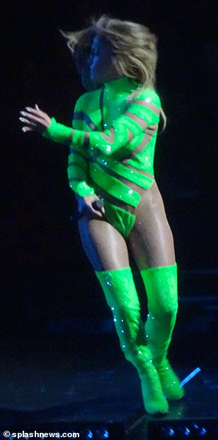 ولم تكتفِ جينيفر بالملابس المثيرة، بل انتقلت إلى أداء حركات رقص جنسية على المسرح، فدفعت الجمهور إلى الجنون برقصها المثير مع طاقم الراقصات المساندة.