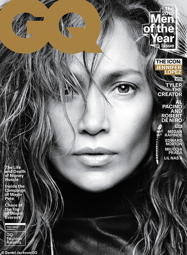 أطلَّت "جينيفر لوبيز" على غلاف مجلة GQ لعدد شهر ديسمبر بصورة مُقربة لوجهها باللونين الأسود والأبيض، وفي صورة أخرى تظهر جانبها الجريء والمثير مُرتديةً فستان أسود من الجلد من توقيع مصمم الأزياء "دينيس باسو" بقيمة 2.8 ألف جنيه استرليني، بينما لم تضع أي مستحضرات تجميل على بشرتها الشبابية.