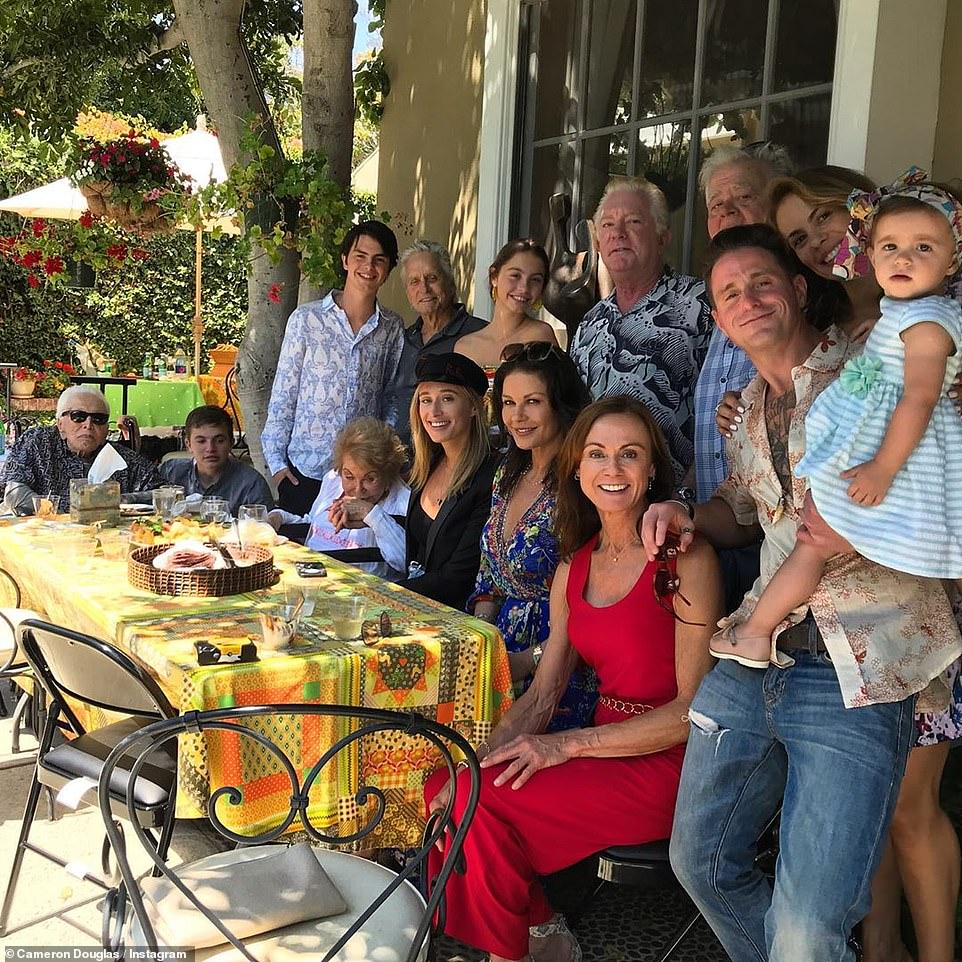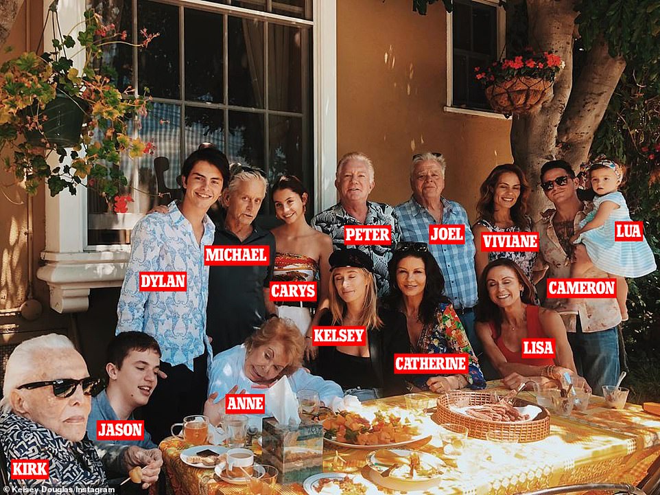 التف حول الطاولة الخشبية أربعة أجيال ضمت "مايكل دوغلاس"، البالغ من العمر 74 عامًا، وزوجته الممثلة الأمريكية "كاثرين زيتا جونز" (49 عامًا)، بالإضافة إلى أبنائهما "ديلان" (19 عامًا) و"كاريس" (16 عامًا).