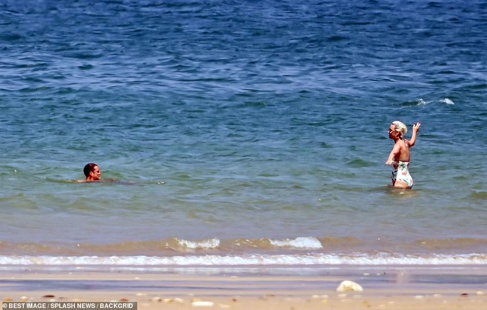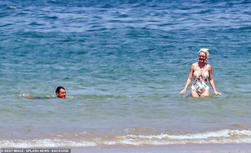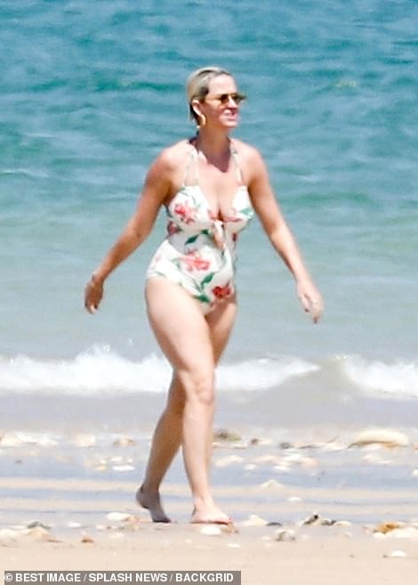 التقطت عدسات الباباراتزي مجموعة صور للنجمين وهما يستمتعان بأشعة الشمس ومياه الشاطئ، حيث استعرضت "كاتي بيري" منحنيات جسدها مُرتديةً مايوه أبيض من قطعة واحدة مُزيَّن بطبعة ورود ملونة من العلامة التجارية " Morgan Lane" بقيمة 214 جنيه استرليني، وسرَّحت شعرها على شكل كعكة مرفوعة، وغطَّت عينيها بنظارات شمسية.