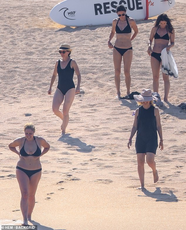 ولا يمكننا تصديق أن "كورتني كوكس" في الخمسينات من عمرها، فهي تمتلك جسدًا رشيقًا مشدودًا خاليًا من العيوب، حيث استعرضت قوامها ببكيني أسود مؤلف من قطعتين من العلامة التجارية Eres ، أثناء تنزهها برفقة صديقاتها على رمال شاطئ البحر.