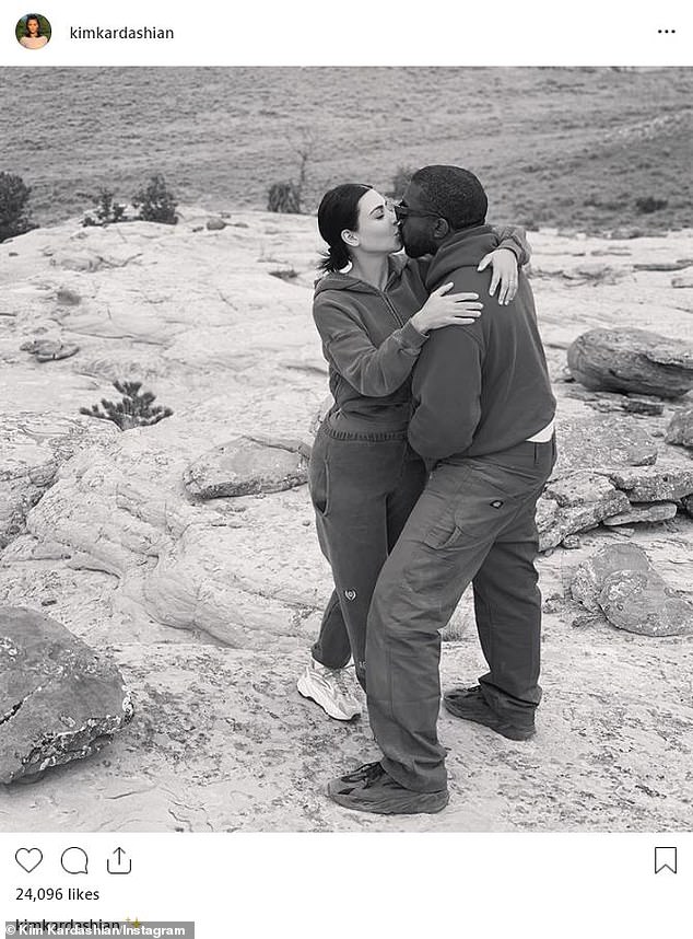 وفي يوم الأحد، قررت "كيم كارداشيان" (38 عامًا) نشر صورة جوية باللونين الأبيض والأسود برفقة زوجها المُحب عبر حسابها على موقع "إنستغرام" وهما يتبادلان القُبلات فوق صخرة، حيث ارتدى الثنائي بدلات رياضية مُتطابقة، وأرفقته بإيموجي على شكل شهاب، ورغم جمال الصورة واللحظة العاطفية، ققررت النجمة حذفها في وقت لاحق.