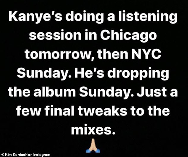 ويأتي حذف الصورة بعدما كشفت "كيم" لمتابعيها الذين يبلغ عددهم 149 مليون متابع عبر موقع "إنستغرام" يوم الجمعة الماضيى أن زوجها سيطلق ألبومه الغنائي الجديد تحت عنوان Jesus Is King بعد فترة من التأخير، حيث كان من المقرر إطلاقه في الـ27 من سبتمبر.