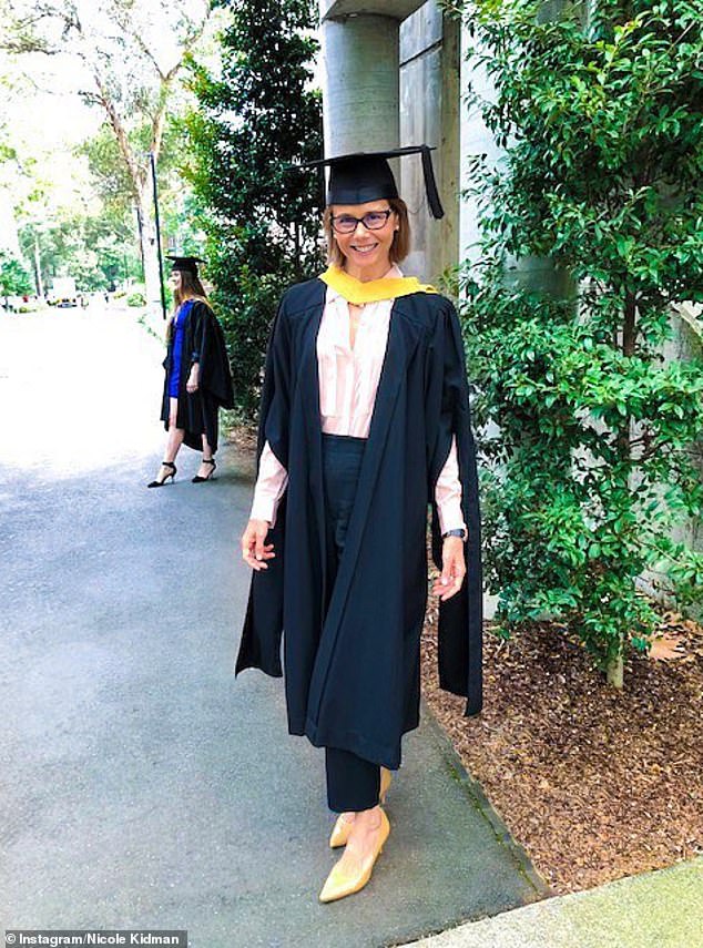 نشرت "نيكول كيدمان"، البالغة من العمر 51 عامًا، عبر حسابها على موقع "إنستغرام" صورة لشقيقتها بملابس التخرج، وعلَّقت: "تهاني لشقيقتي العزيزة التي حصلت على شهادة القانون قبل يومين."