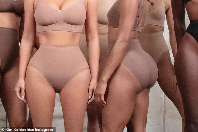 وشاركت كيم مجموعة من الصور، التي تروّج فيها للقطع الداخلية بجانب عارضات الأزياء، حيث كانت ترتدي قطعة واحدة من المشد باللون البيج، ويأتي على هيئة شورت، أما في صورة أخرى فقد ظهرت ببكيني، مطابق لونه لما قبله، بالإضافة إلى إطلالة ثالثة كشفت فيها عن قطعة جمعت بين البكيني من جهة وشورت من جهة أخرى، مع حمالة صدر من نفس النوع.