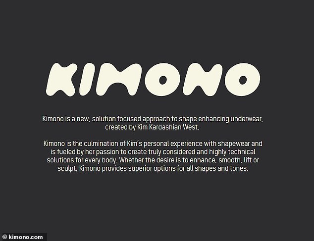 وعند الدخول لموقع Kimono.com الجديد، تستقبلك رسالة ترحيبية تعرّفك بالعلامة التجارية، حيث تقول: "كيمونو هو طريق جديد يركز على الحلول للملابس الداخلية، أنشأتها كيم كارداشيان ويست"، وفي الختام: "سواء أكانت رغبتك في التحسين أو الرفع أو النحت، فإن كيمونو توفر لك جميع الحلول".