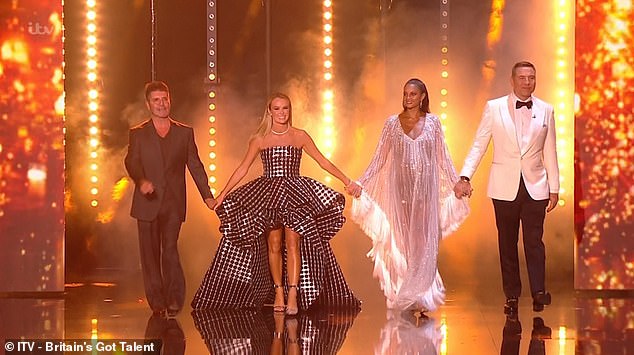وقبل الترحيب بطفلها بعدة أسابيع، بدت "أليشا ديكسون" (40 عامًا) مذهلة عندما انضمت إلى زملائها في لجنة التحكيم "أماندا هولدن"، "سيمون كويل"، و"ديفيد واليامز" في الحلقة المسجَّلة لنهائي برنامج المواهب البريطاني  Britain's Got Talent: The Champions ليلة أمس السبت.