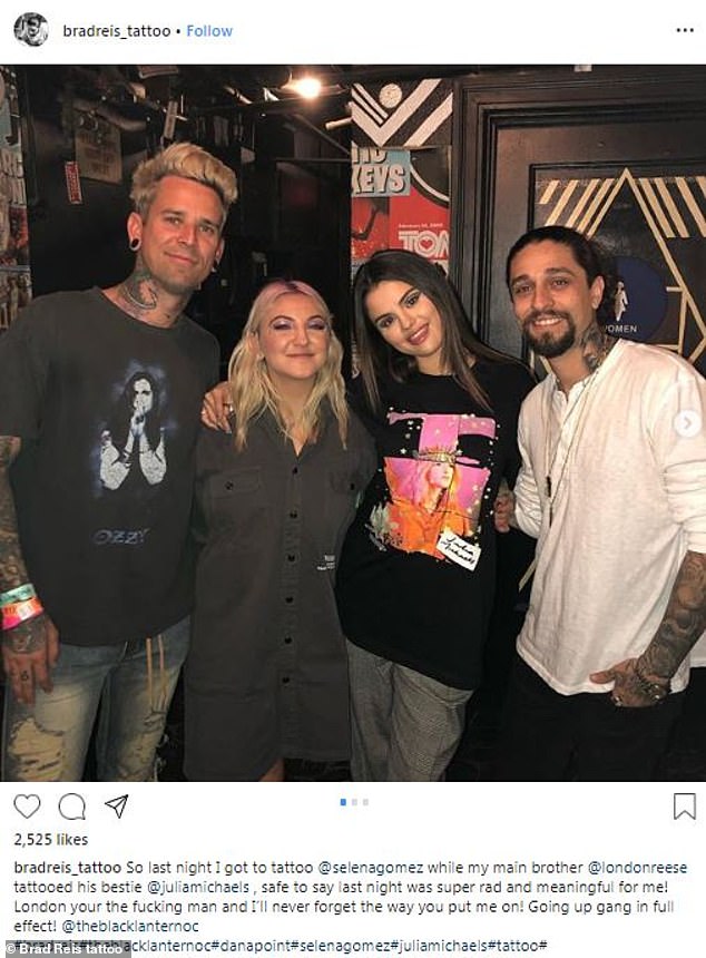وبعد انتهاء الحفل، توجّهت "غوميز" و"جوليا" للحصول على وشم الصداقة تعبيرًا على علاقتهما القوية، فاختارتا رسم سهم باتجاهين متعاكسين أسفل إصبع الإبهام، ونشرت النجمة صورة للوشم، وكتبت: "حصلت على وشم، السهم سيشير إليك إلى الأبد."