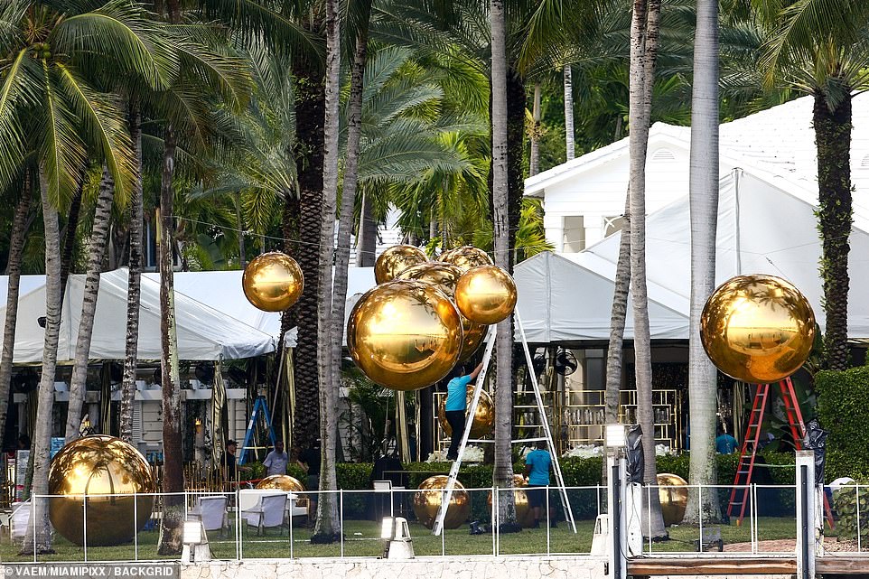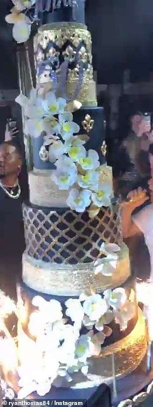 وتضمنت ديكورات الحفل كرات ذهبية مُنتشرة، وكعكة عيد ميلاد ضحمة باللونين الأسود والذهبي بطول خمسة طوابق.