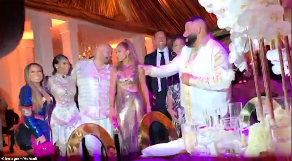 وبدأ حفل الاستقبال الرائع في ساعات الصباح الأولى، وحضره مجموعة من أصدقاء "جينيفر" المشهورين، بمن فيهم الدي جي "خالد"، و"فات جو"، والمغني "فوليشي أشانتي"، بالإضافة إلى "ريان توماس"، وابنتي خطيبها "ناتاشا" و"إيلا".