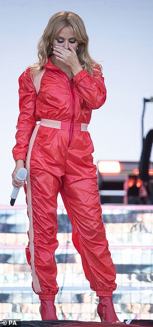 خلال عرضها الغنائي الذي استمر لـ75 دقيقة ، أنهارت "كايلي مينوغ" (51 عامًا) في البكاء واجتاحتها العواطف بعد التطرق للحديث عن إصابتها بسرطان الثدي الذي كان سببًا في إلغاء عرضها في المهرجان عام 2005، وقالت: "في ذلك العام، كان من المقدر أن أكون على خشبة المسرح ، إلّا أن الظروف لم تسمح بذلك.. تمنيت لو أن الأمور كانت مختلفة، إلّا أن الحياة هي الحياة.. إننا معًا في هذه اللحظة."