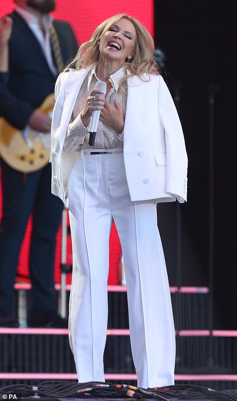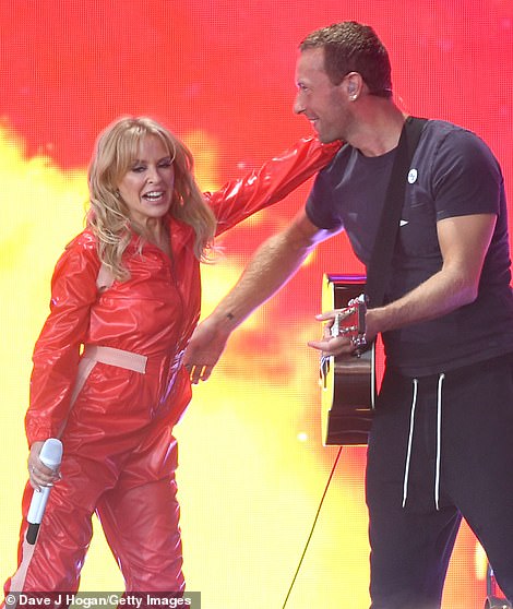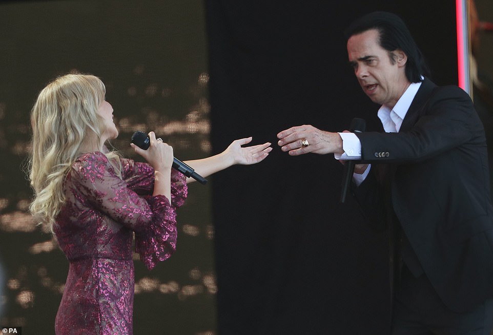 وأشعلت "كايلي" المسرح بأغنيتها الضاربة Can't Get You Out Of My Head بمشاركة النجم العالمي "كريس مارتن"، كما غنَّت أغنيتها Where The Wild Roses Grow إلى جانب المغني الاسترالي "نيك كيف".
