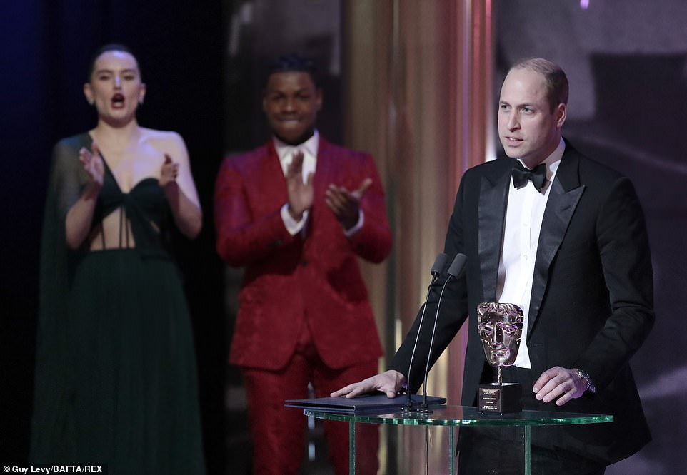 من جهة أخرى، لم يقل الأمير "ويليام" أناقة عن زوجته مُرتديًا بدلة توسكيدو سوداء أنيقة، في حين أمتع الحاضرين بمزاحه اللطيف حول النجوم الذين تلقوا جوائز لتجسيدهم شخصيات من عائلته الملكية.