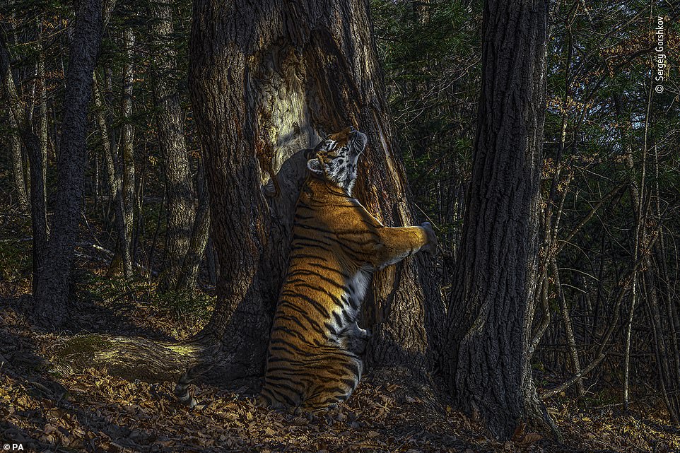 أعلنت "كيت ميدلتون" (38 عامًا) عن اسم الفائز بجائزة أفضل مصور للحياة البرية وهو المصور الروسي "سيرجي جورشكوف" عن صورته التي تحمل عنوان "العناق"، التي تظهر نمرًا سيبيريا يعانق شجرة التنوب.