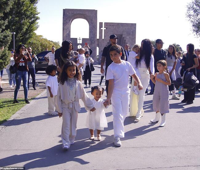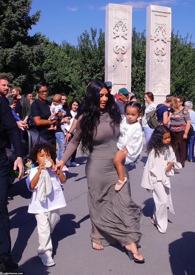 رصدت عدسات الباباراتزي "كيم كارداشيان" في العاصمة الأرمينية "يريفان" برفقة أبنائها الأربعة وشقيقتها الكبرى "كورتني كارداشيان" وأطفالها الثلاث "ميسون"، "بينيلوب"، و"راين"، حيث توَّد النجمة تعميد أطفالها كما عمَّدت ابنتها "نورث" سابقًا في الكنيسة الرسولية الأرمنية في القدس.