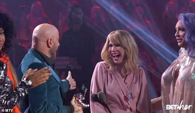 فأثناء تقديم جائزة "فيديو" العام للنجمة "تايلور سويفت"، اختلط الأمر على ترافولتا وظن أن الدراج كوين الأمريكي "جاد جودي" هو تايلور، وذلك لأنه يلعب دور شبيهها في اغنيتها الفائزة you need to calm down، فسرعان ما تدارك ترافولتا الموقف عندما نظر اليه جاد بتعجب، وبحث عن تايلور الحقيقية التي كانت لا تزال قريبة من مقعدها.
