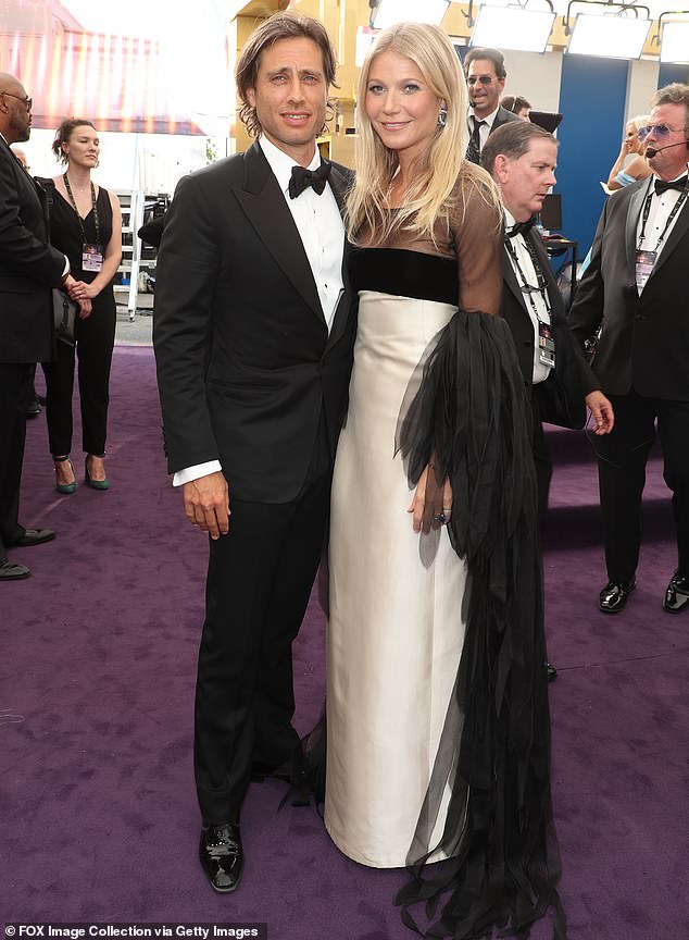 وتواجدت "بالترو" إلى جانب زوجها الوسيم "براد فالكوك"، الذ تألّق ببدلة توسكيدو سوداء أنيقة، وربطة عنق على شكل ببيونة.