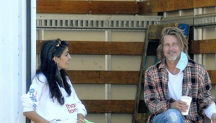 وكما رصد "براد بيت" يدخن سيجارة بعد يوم عمل طويل، وشوهد يدردش مع امرأة سمراء.