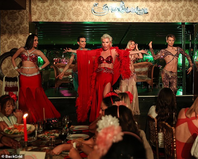 ارتدى ألفيس، 35 عامًا، بدلة رقص حمراء خلال ظهوره في نادي أرابيسك باسطنبول في تركيا مساء الخميس.