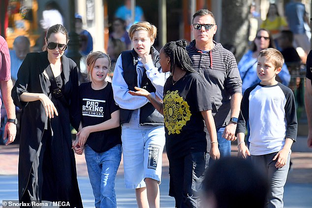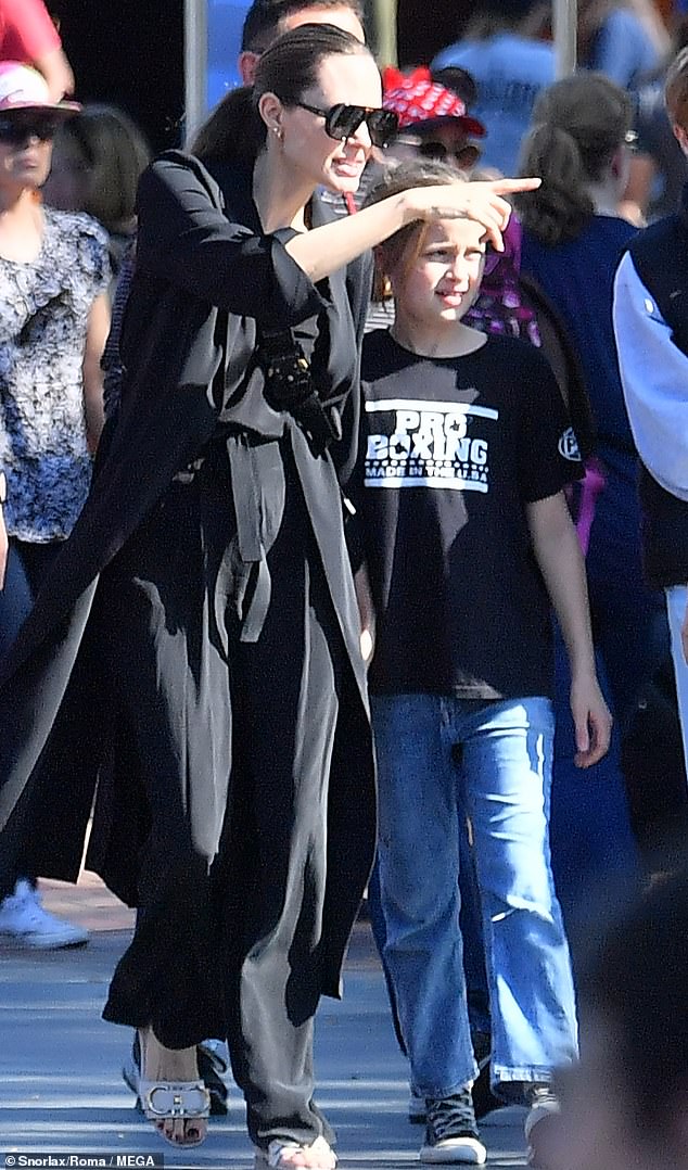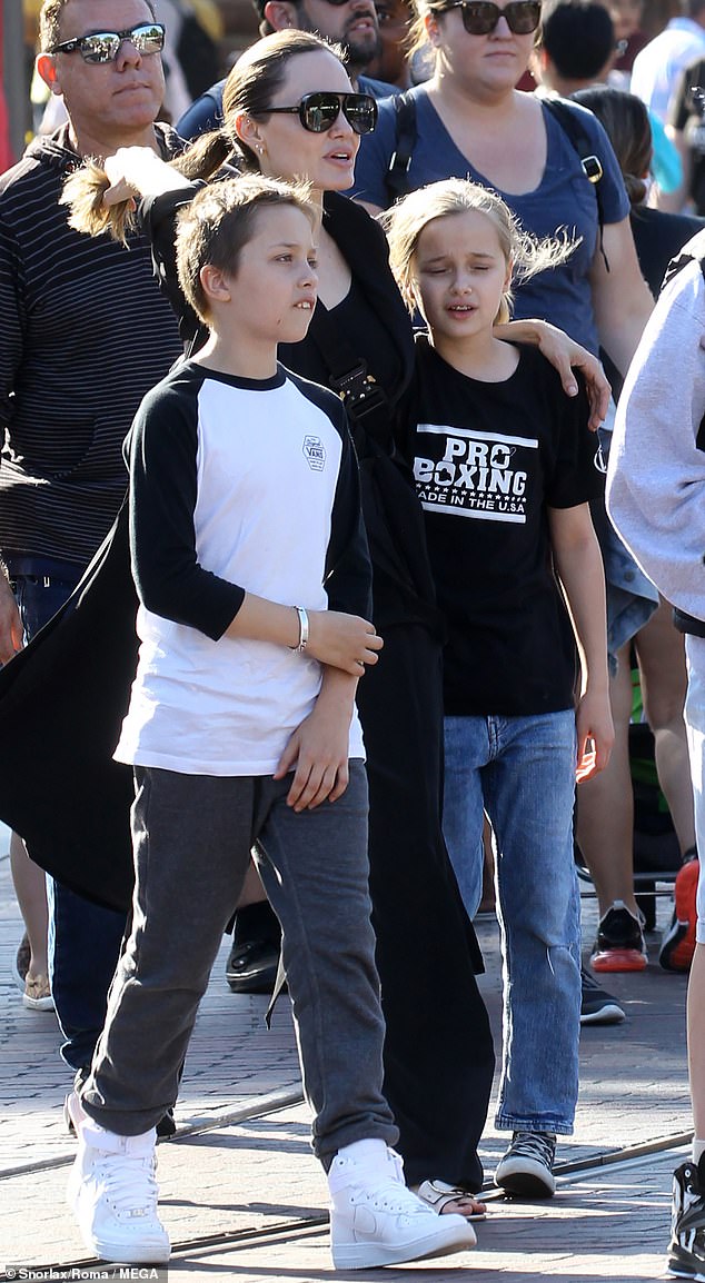 ويبدو أن أنجلينا تحاول التخفيف عن نفسها وأطفالها بتوديعهم مادوكس، عن طريق قضاء يوم كامل في مدينة ديزني لاند الواقعة في كاليفورنيا، إذ خطفت أنظار وسائل الإعلام أثناء تجوّلها مع أطفالها الأربعة في الملاهي.