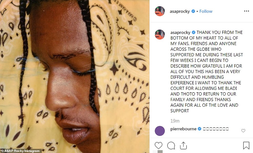 وتوجَّه نجم الراب عبر حسابه على موقع "إنستغرام" لشكر من وقف داعمًا له، وكتب: "شكراً من صميم القلب إلى كل المعجبين والأصدقاء وكل الذين دعموني في الأسابيع الأخيرة كانت تجربة صعبة جدا ومهينة".
