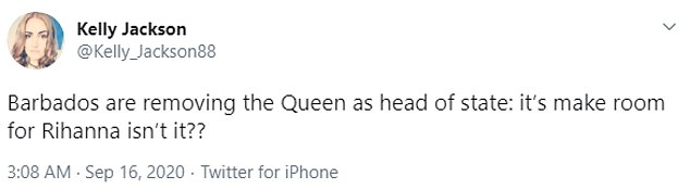 سأل شخص آخر، "لماذا تريد بربادوس أن تتولى الملكة رئاسة الدولة بينما يمكن أن يكون لديها ريهانا؟"