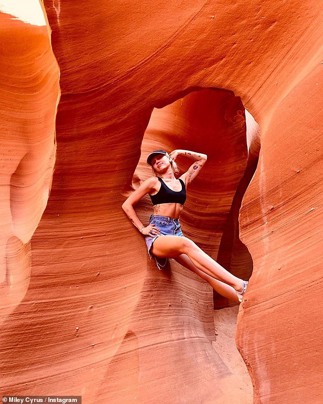 كانت مايلي ترتدي توب أسود مع هوت شورت جينز، حيث بدت نحيلة جداً في الصورة كما ظهر عظام معدتها من وزنها الخفيف، ونسّقت معه قبعة سوداء وحذاء رياضي أبيض، وهي في كهف Antelope في صحراء أريزونا.
