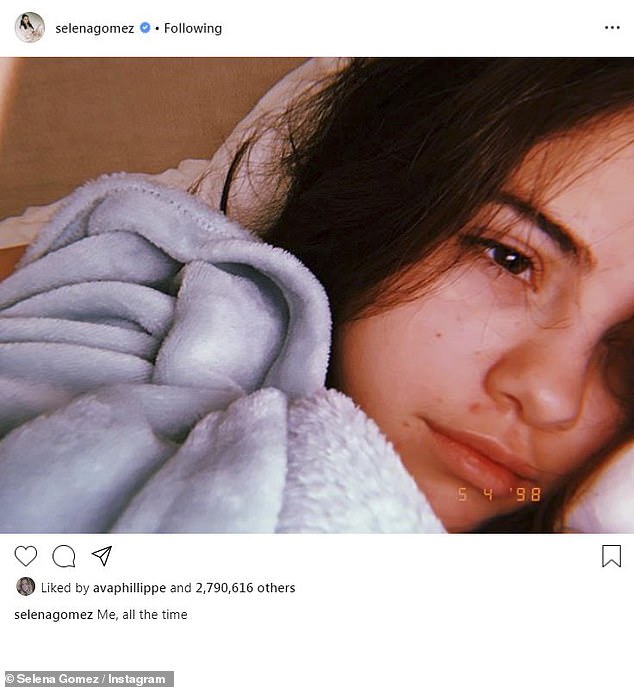 وظهرت سيلينا في الصوورة وهي خالية من المكياج بينما كان شعرها منسدلاً بطريقة فوضوية كما غطت نفسها بوشاح أزرق وعلّقت على الصورة "أنا طول الوقت".