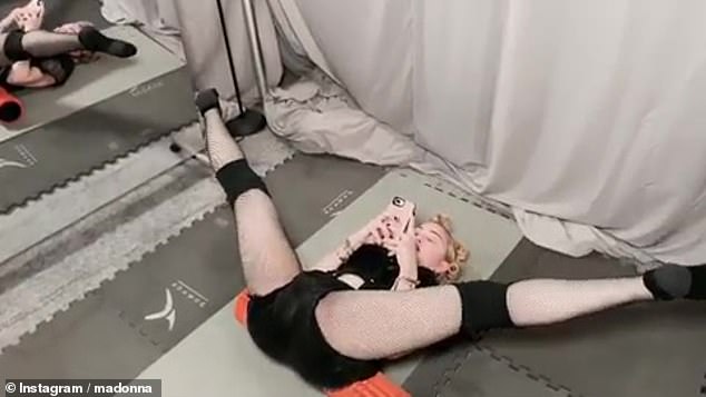 وظهرت الأسطورة الغنائية بإطلالة ووضعية غاية في الجرأة، وهي ترتدي ليوتارد أسود، زيّن بجوارب الشبكة، أما شعرها الأشقر فقد سرّحته على طريقة المموج، بينما كانت تحرّك قدميها بمرونة مع تركيزها على هاتفها، وعلّقت مادونا بجانب الصور بقولها: "Madame X تستعد لليوم".