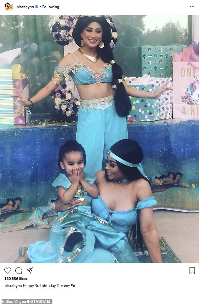 شاركت عارضة الأزياء بلاك شاينا صوراً من حفلة ابنتها عبر حسابها الخاص على انستغرام وظهرت الأم والابنة بزي الأميرة ياسمين، حيث كانتا تجلسان على الأرض بينما كانت ممثلة بزي مطابق.