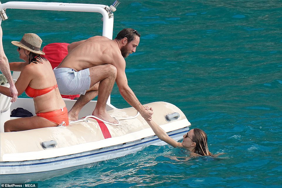 وانضم إليها زوجها جيمس ماثيو بينما كانت بيبا تسبح في البحر وتستمتع بأشعة الشمس مع والدتها وخطيبة شقيقها.