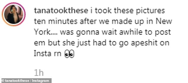 ويبدو أن بيلا كانت حذرة بعض الشيء في رسالتها، إذ كان النص يقول "تانا قد عادت إلى المجموعة، مرحباً بها"، ولم يكفها نشر تلك الرسالة، بل شاركت تانا صورةً لبيلا عبر حسابها على إنستغرام.