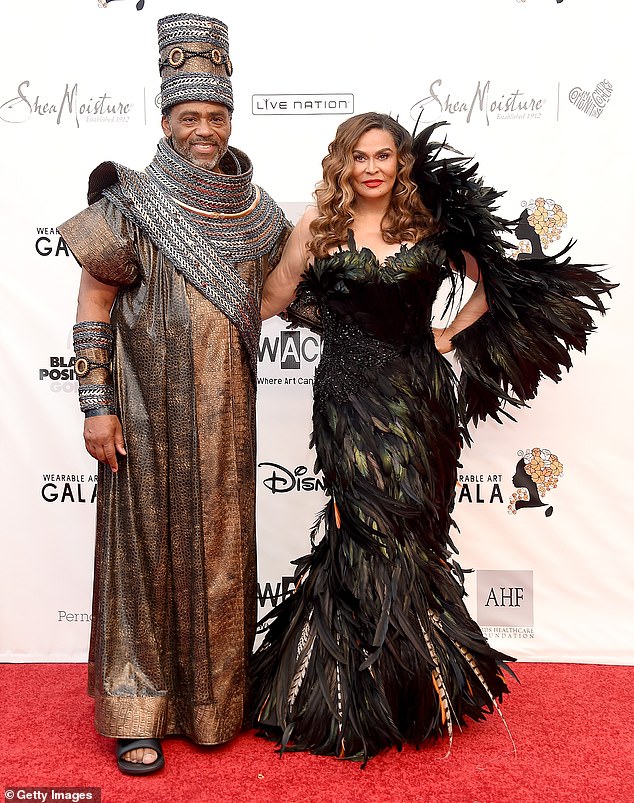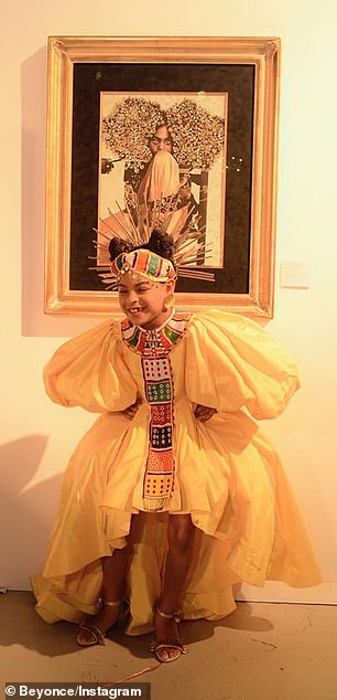 بينما تألقت ابنتها بزي إفريقي تقليدي، إذ ظهرت بفستان أصفر منفوش، وأكمام عريضة، وانتعلت حذاء مفتوحاً، كما اعتمدت تسريحة الكعكة المرتفعة لوضع اكسسوار شعر مزين بالألوان والعيدان الخشبية من الخلف.