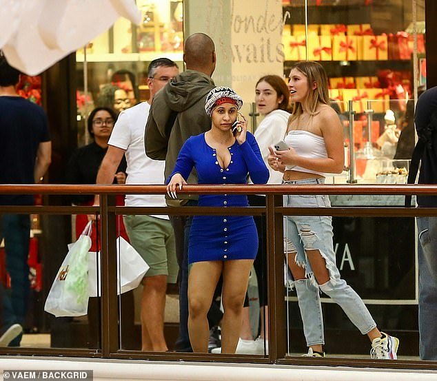 وفي وقت سابق، انتشرت صور لمغنية الراب الأمريكية "كاردي بي" وهي تتجوّل في أحد المراكز التجارية بمدينة ميامي الأميركية مُرتديةً فستانًا نيلي اللون قصيرًا ضيقًا ومفتوح الصدر، ولم تطبق أي مستحضرات تجميل على بشرتها، بينما غطَّت شعرها بشال ملوَّن التف حول رأسها، وبالتأكيد بدت أكبر عمرًا ببشرة شاحبة وهالات سوداء تحت عينيها.