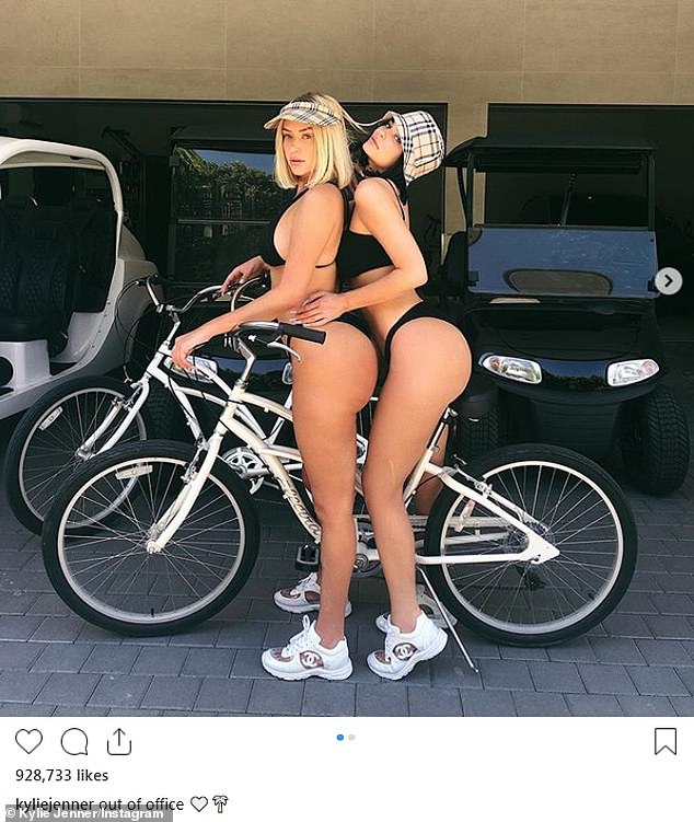 أما كايلي فلم تتردد في نشر سلسلة من الصور مع صديقتها ستايسي أثناء قضائهما إجازة نهاية الأسبوع، حيث كانتا ترتديان بكيني أسود مع قبعات بنقشة الكاروهات الخاصة بعلامة بيربري، بينما كانتا تركبان دراجة هوائية، وقد بدتا بنفس الإطلالة.
