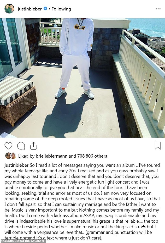 يبدو أن النجم الكندي "جاستن بيبر" عدل عن رأيه بخصوص اعتزاله الغناء مؤقتًا؛ للتركيز على صحته العقلية والجسدية.