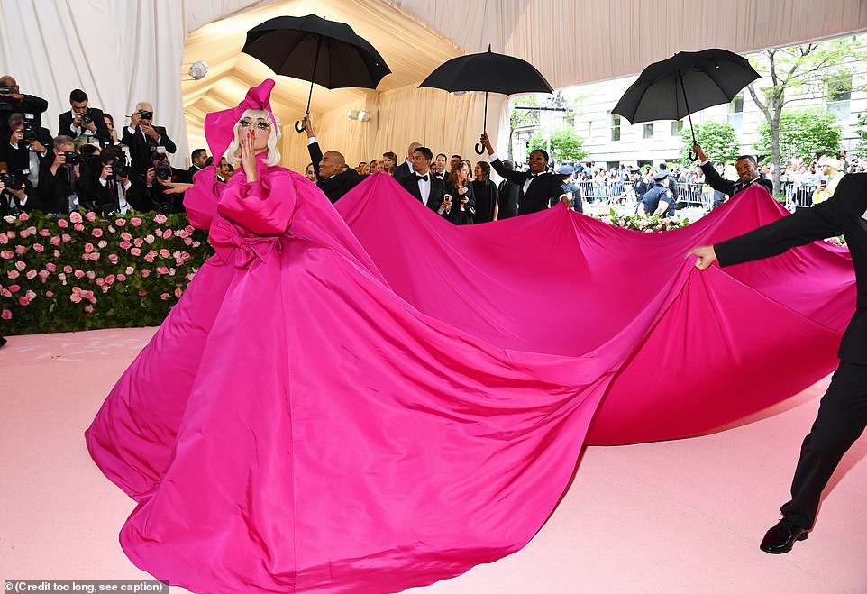 ولفتت ليدي غاغا الأنظار منذ وصولها على السجادة الحمراء، حيث مثّلت شعار الحفل في أزيائها المصممة من مجموعة "براندون ماكسويل"، إذ ظهرت بأربعة إطلالات مختلفة باللونين الأسود والفوشيا المستوحاة من طيور الفلامنغو وبتصاميم غريبة ومبالغ فيها.