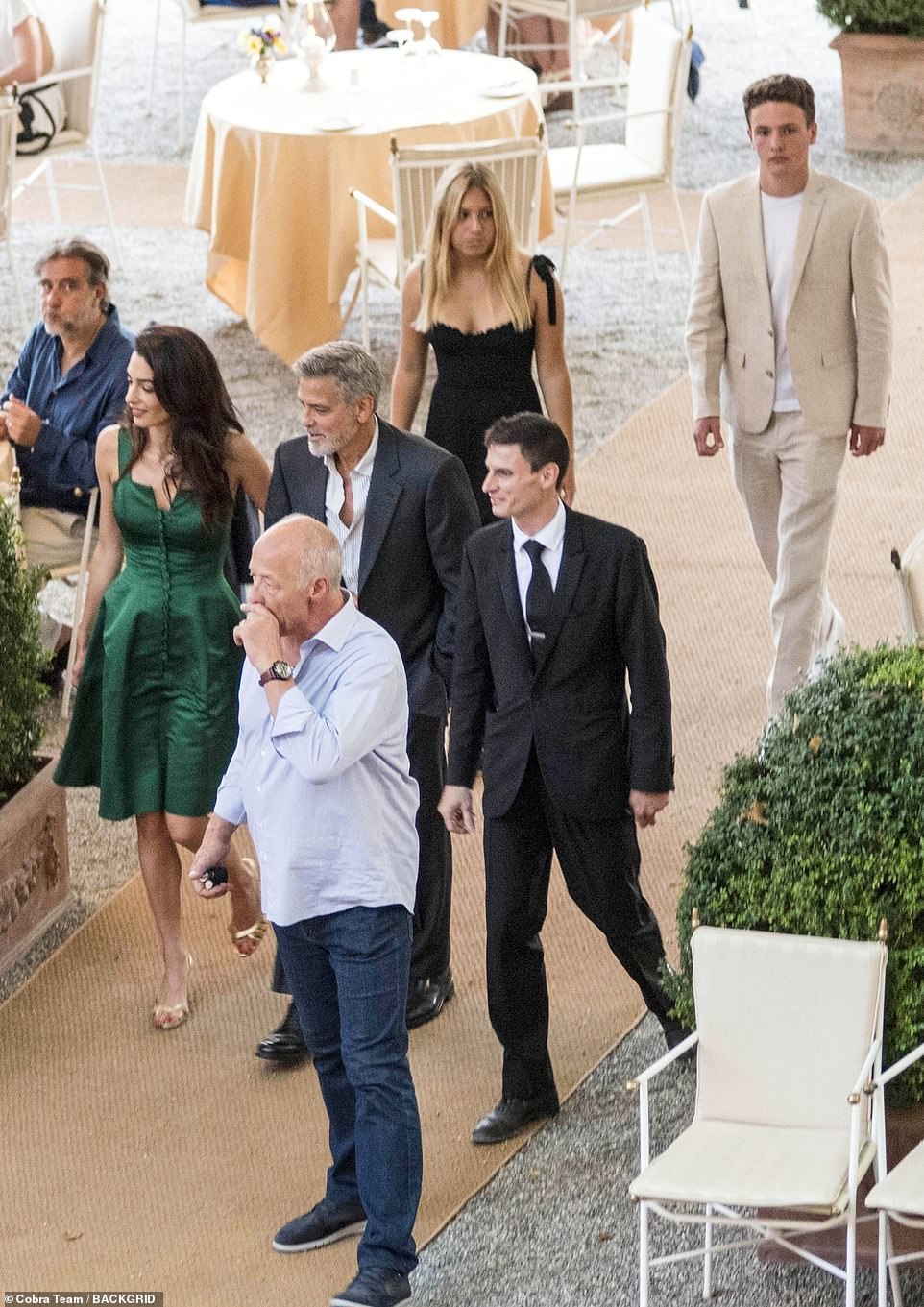 فظهر الثنائي في فندق Villa D'este من مساء يوم الأحد الماضي، وهما يمسكان بأيدي بعضهما البعض، بعيداً عن أطفالهما، وقد انضما إلى والدة أمل بارعة وأصدقائها لتناول وجبة العشاء.