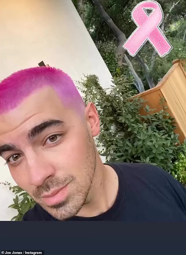 واتخذ النجم الأمريكي "جو جوناس" منصته عبر موقع "إنستغرام لنشر الوعي بين متابعيه لكن على طريقته الخاص، إذ نشر صورة سيلفي له بلون شعر وردي وإلى جانبه وضع شعار سرطان الثدي.
