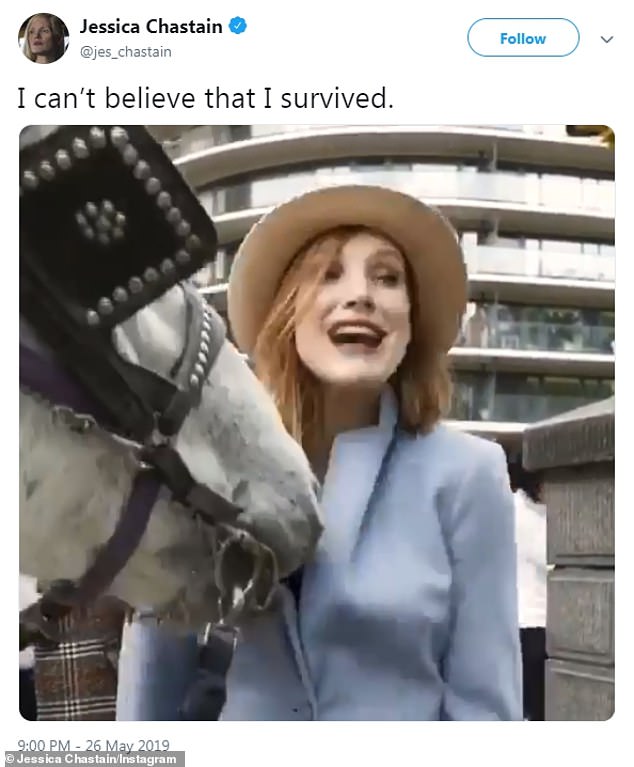 ويبدو أن الحصان قد عض جيسيكا من منطقة صدرها، حيث قالت وهي ترجع إلى الوراء: "هذا الحصان قلل من حجم صدري"، كما أضافت تعليقاً لمقطع الفيديو: "لا أصدق أنني نجوت".